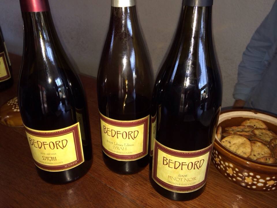 We took a quick peek inside the extraordinary (and very charming and very stuck in time) Union Hotel, a definite ‘be back’ for me and were packed up and headed for the hills when my eagle-eyed travel companion noticed another tasting room on the short main drag that showed signs of life.  What we discovered was Bedford Winery tasting room, a fixture in Los Alamos long before it started to get fancy, and what a treat this brief respite before heading into rush hour traffic was. The owner/winemaker and Los Alamos pioneer who, it must be said, looks exactly as a winemaker should, left as we started our tastings to take his recently rescued pit out for a stroll, but we were well tended by the  voluble and very friendly tasting room manager who led us through a tour of two barrel fermented Rieslings (chewy and citrus fruity and peachy and viscous – especially the 2010) and a barrel fermented Chenin Blanc which was all melons and a touch of white peaches with a satiny mouth feel, crisp acid and a bit of brawn from the barrel. In fact, this was the second yummy Chenin Blanc I had tasted this trip – reminding me it is time to revisit this varietal with vigor! I had a lovely honeyed, mineraly version at Paso’s LXV Wines that had a sensuous wisp of noble rot in it. But that is another story.